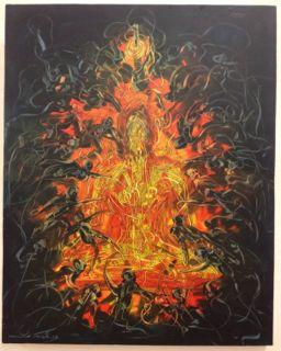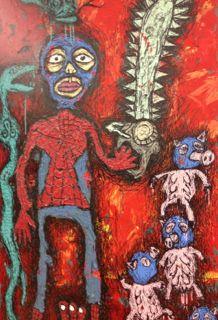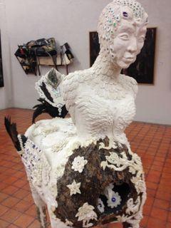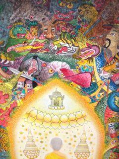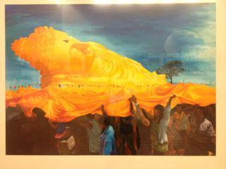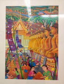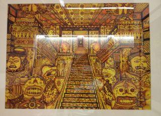 かき込みが細かく、手間のかかるものが多いです。 タイの人々にとって、昔から慣れ親しんできたワット・ポーなどの寺院の、あの壮絶な装飾美が美的感覚として身に付いているのでしょうか。 アートは崇高なものである!という変な勘違いもなく、開かれていて、写真もばんばん撮ってよくて(2階の作品はダメかな?照度調整してるかんじだった)モチーフも表現も分かりやすく市民の美術館というかんじでした。(タイ人には係員以外一人も会いませんでしたが‥)